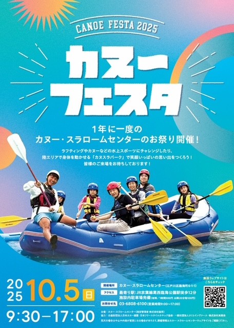 - 10/5 カヌーフェスタ2025 江戸川区葛西臨海公園<div><br></div><div>東京オリンピックのカヌー競技会場として使われていた場所でカヌーフェスタが開催されます!</div><div>いろいろなコンテンツがあるようで楽しみです!</div><div><br></div><div>9:30~17:00</div><div><br></div><div><br></div>