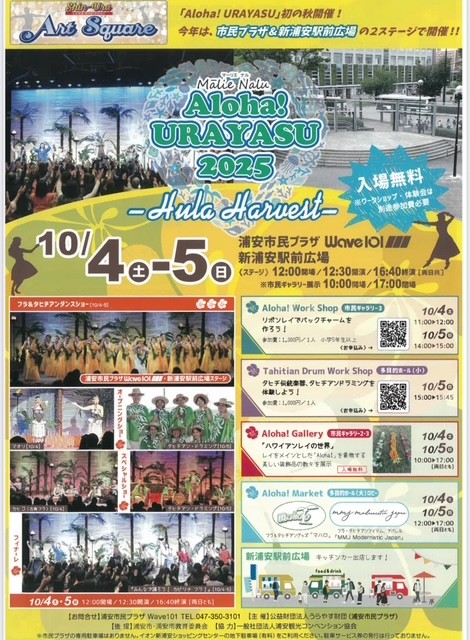 - 10/4 Aloha URAYASU 2025 新浦安駅前<div><br></div><div>今年初開催!</div><div>韓国キッチンカーだけど今回は封印してハワイ使用!!</div><div>ロコモコ丼やチュロスマンゴーソース添えなどをご用意してお待ちしております。</div><div><br></div><div>11:00~17:00</div><div><br></div><div><br></div>